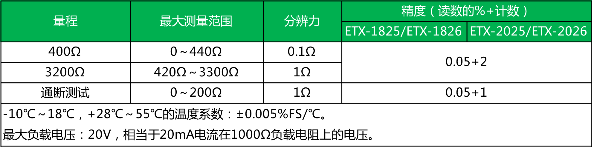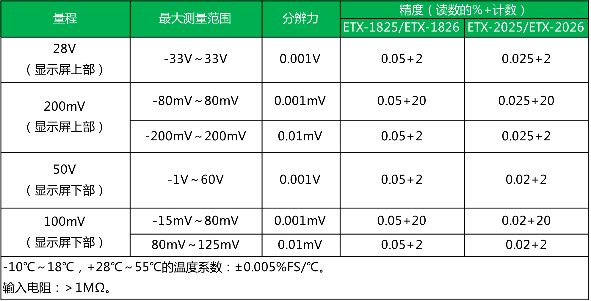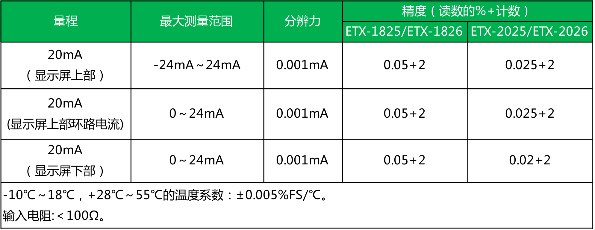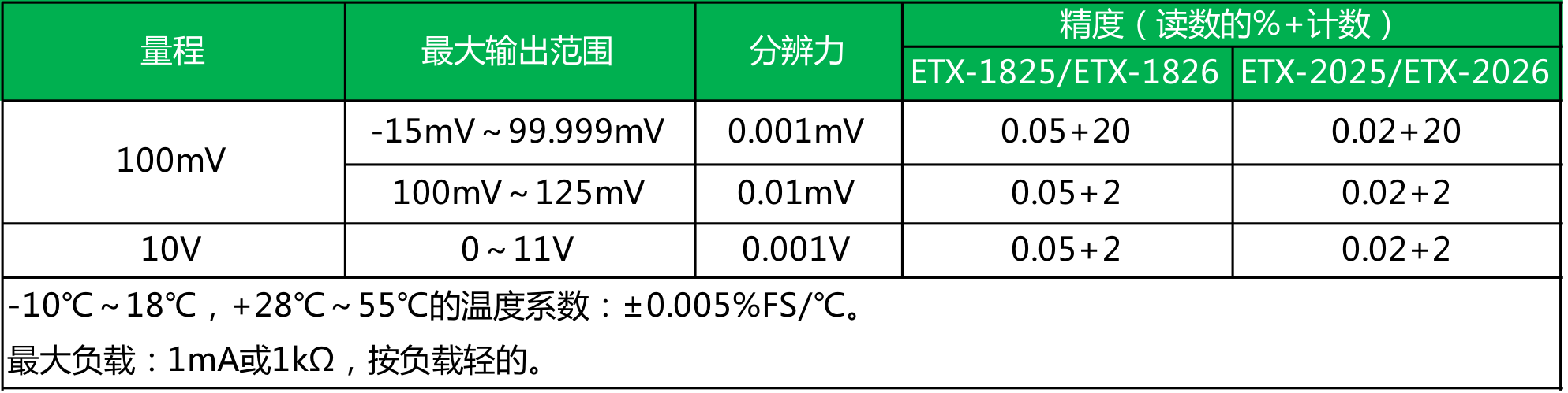 ● ETX-2025/2026型 精度为0.02%;ETX-1825/1826型 精度为0.05%;