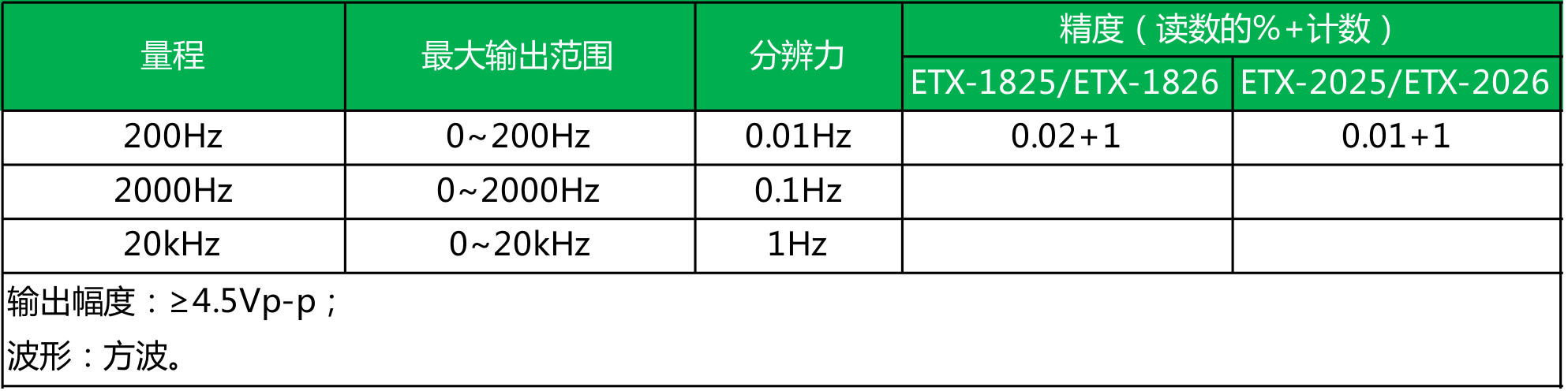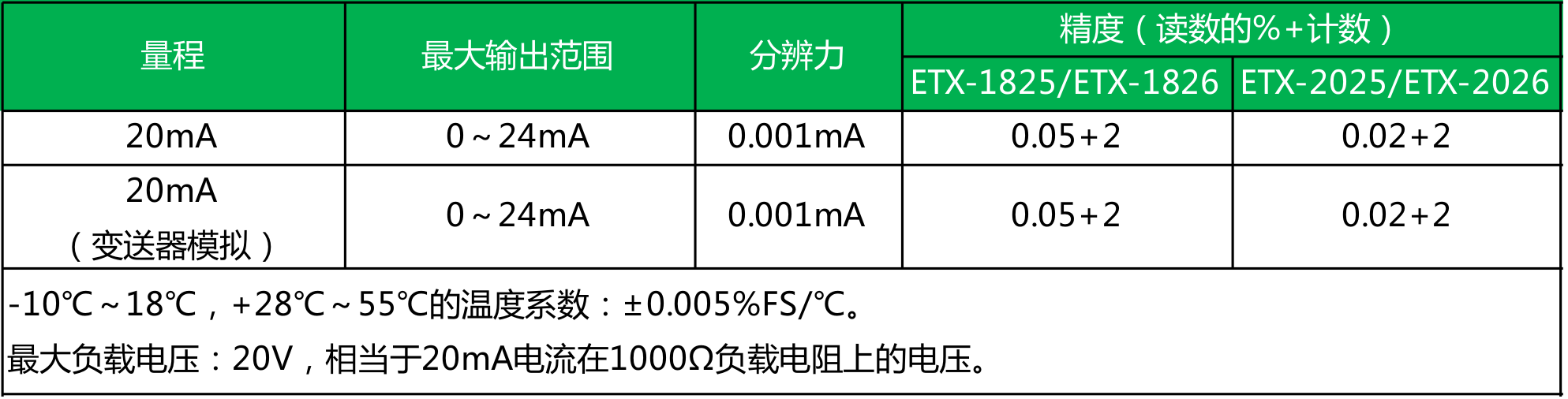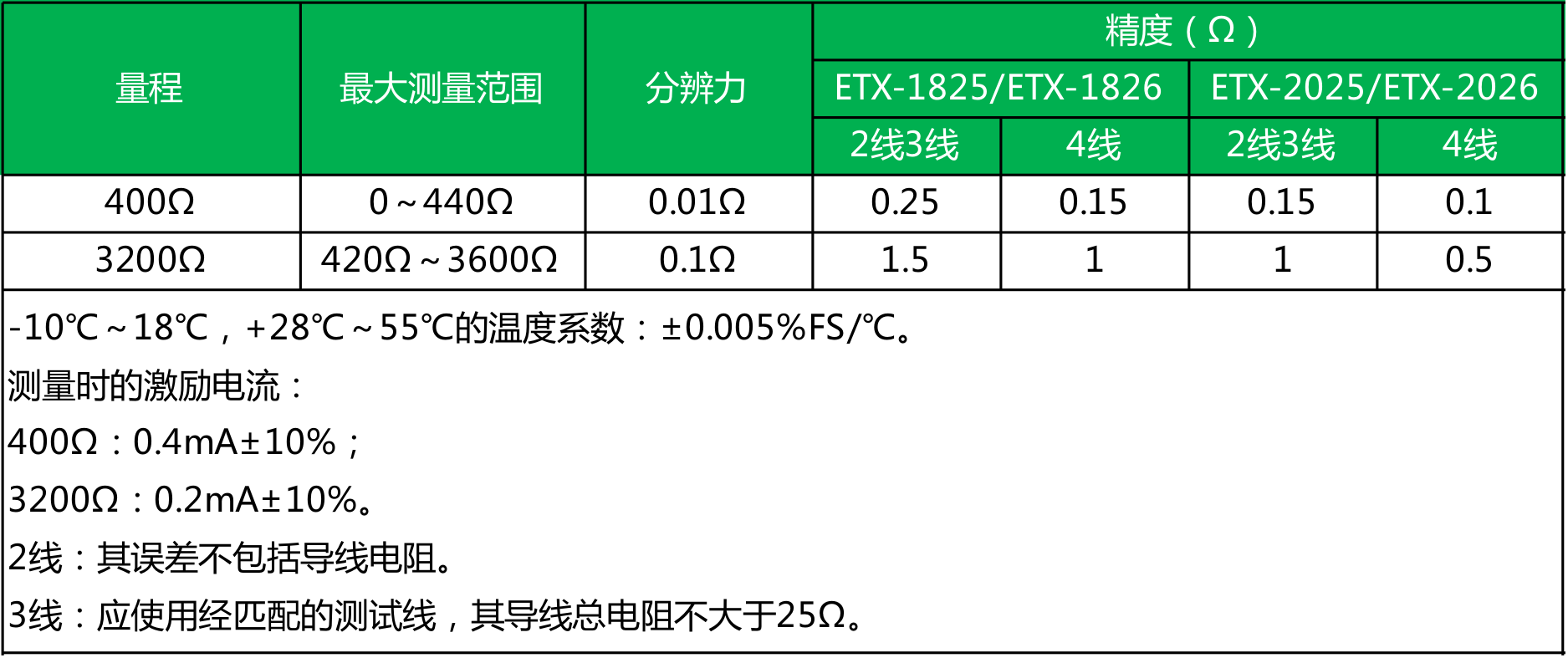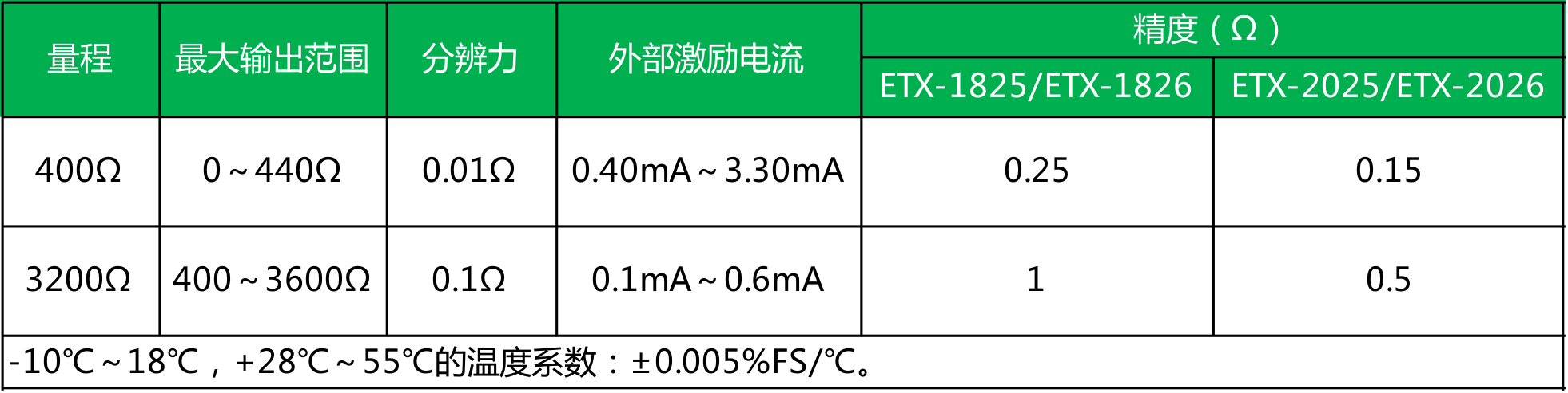 ● ETX-2025/2026型 精度为0.02%;ETX-1825/1826型 精度为0.05%;